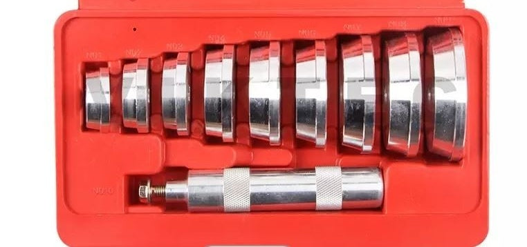 Комплект за монтаж на лагери и сегменти - спомага за монтиране и демонтиране на лагери или сегменти, без да ги наранява механично. За лесно съхранение и транспортиране, той се доставя в здрава пластмасова кутия.