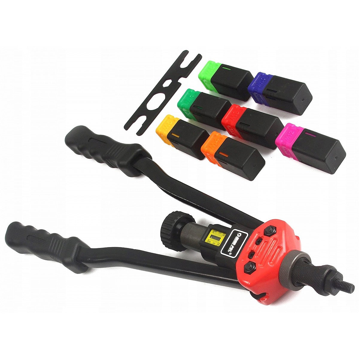 Професионална нитачка с 3 функции. Проектирана да прави материални връзки с нит гайки, нитове и подрязване на отвори с две форми (квадратни и кръгли). Главите са изработени от трайна хром-молибденова инструментална стомана. Удобен куфар за съхранение и транспортиране.