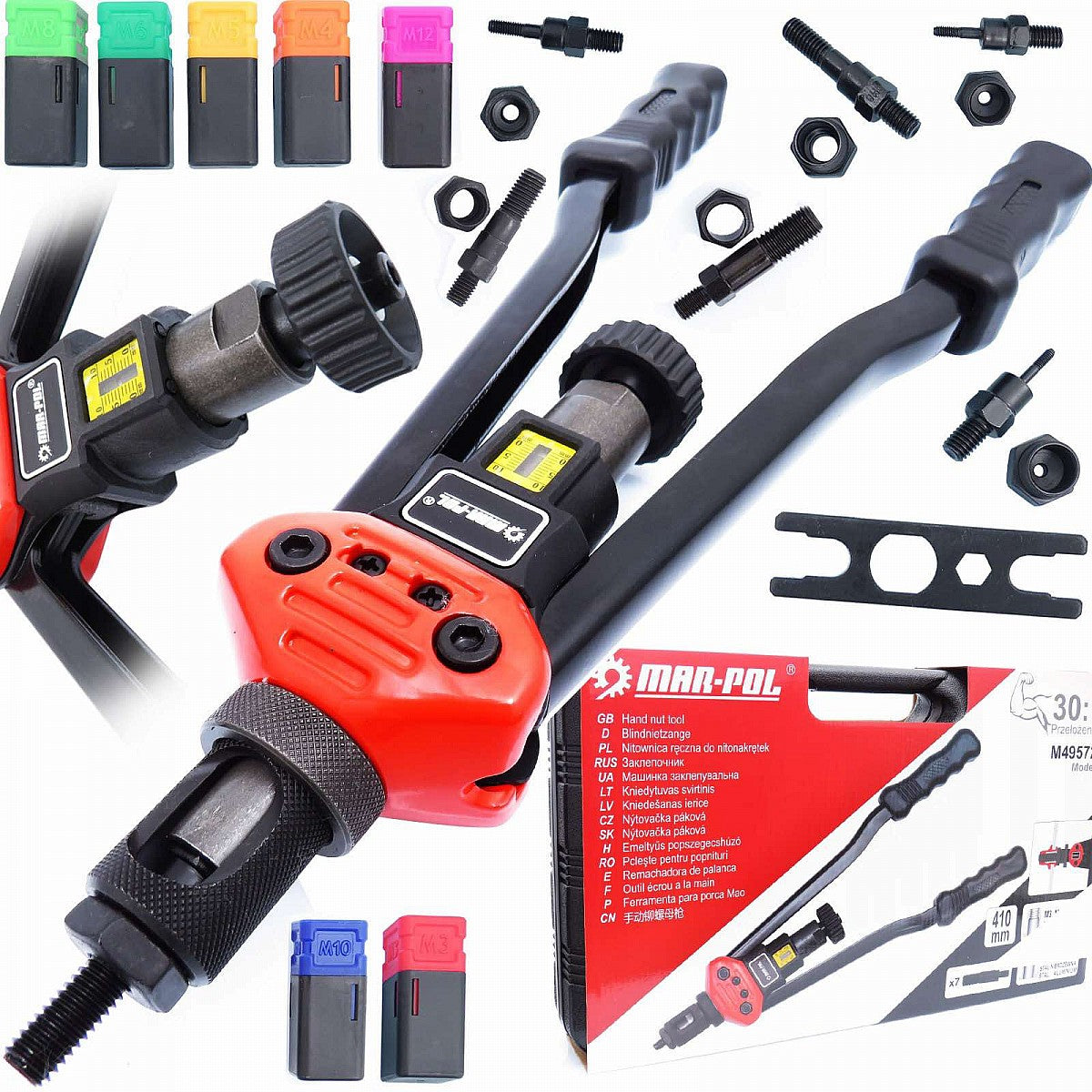 Комплект ръчна нитачка Mar-Pol , 3 в 1, поп нитове, нит гайки, 2 режещи глави 410mm