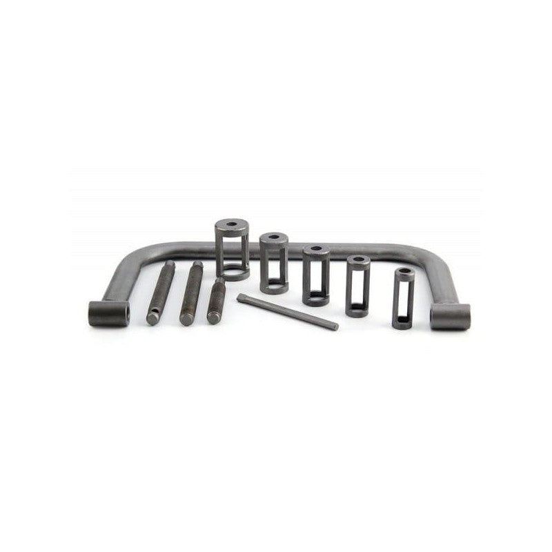 Универсален комплект, чрез който можете лесно и бързо без усилие да поставите пружините на клапаните, той улеснява тяхното свиване без усилия. Комплектът е подходящ за всички видове превозни средства като: автомобили, джипове и повечето двигатели на мотоциклети. Той съдържа 5 адаптера, което го прави изключително търсен от всички авто сервизи, тъй като ще премахне и свие пружините на повечето цилиндрови глави. Скобите се използват при свалена цилиндрова глава.
