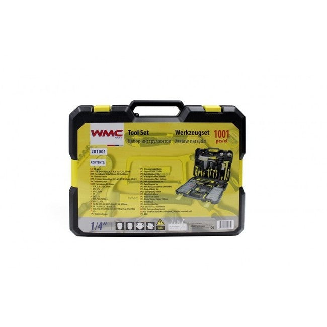 Инструментите на марката WMC са изработени от висококачествена хром-ванадиева стомана,което ги прави много издръжливи.Комплектът е затворен в плътна кутия,което го прави идеален за взимане със себе си,а също така и лесен за съхранение.Съставът на комплекта е избран да задоволи и най-взискателните клиенти.Той е перфектен като подарък за човек,който все още няма работилница,защото ще намери всички необходими инструменти в него.