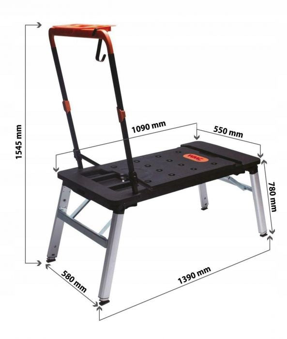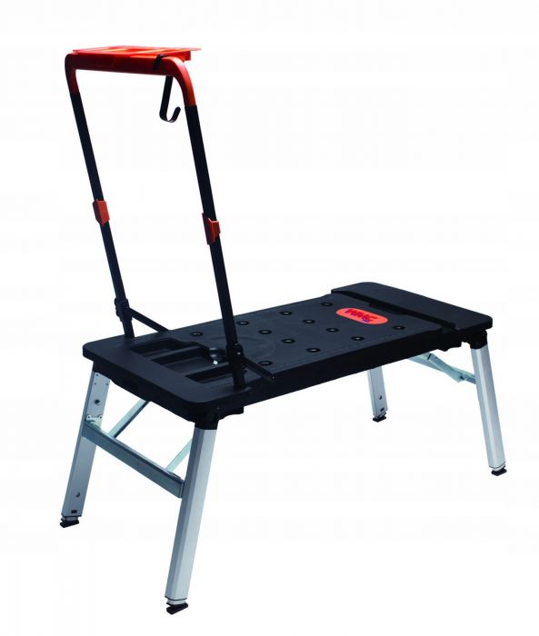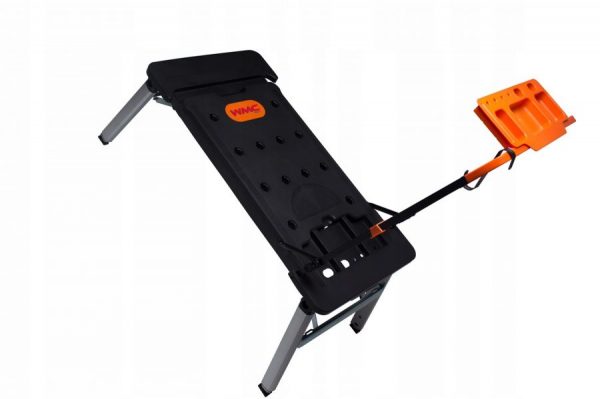 Многофункционална работна маса, която има голяма работна повърхност, която улеснява рязането и пробиването. Отстрани на масата има вградено чекмедже. Може да се използва като стабилно скеле или работна платформа.