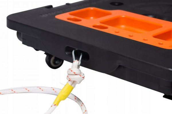 Също така функционира като лежанка при работа в гаражи или автосервизи. Може лесно да се сгъне в багажника на автомобил и да се транспортира. Масата е изработена от плътна ABS пластмасова сплав.