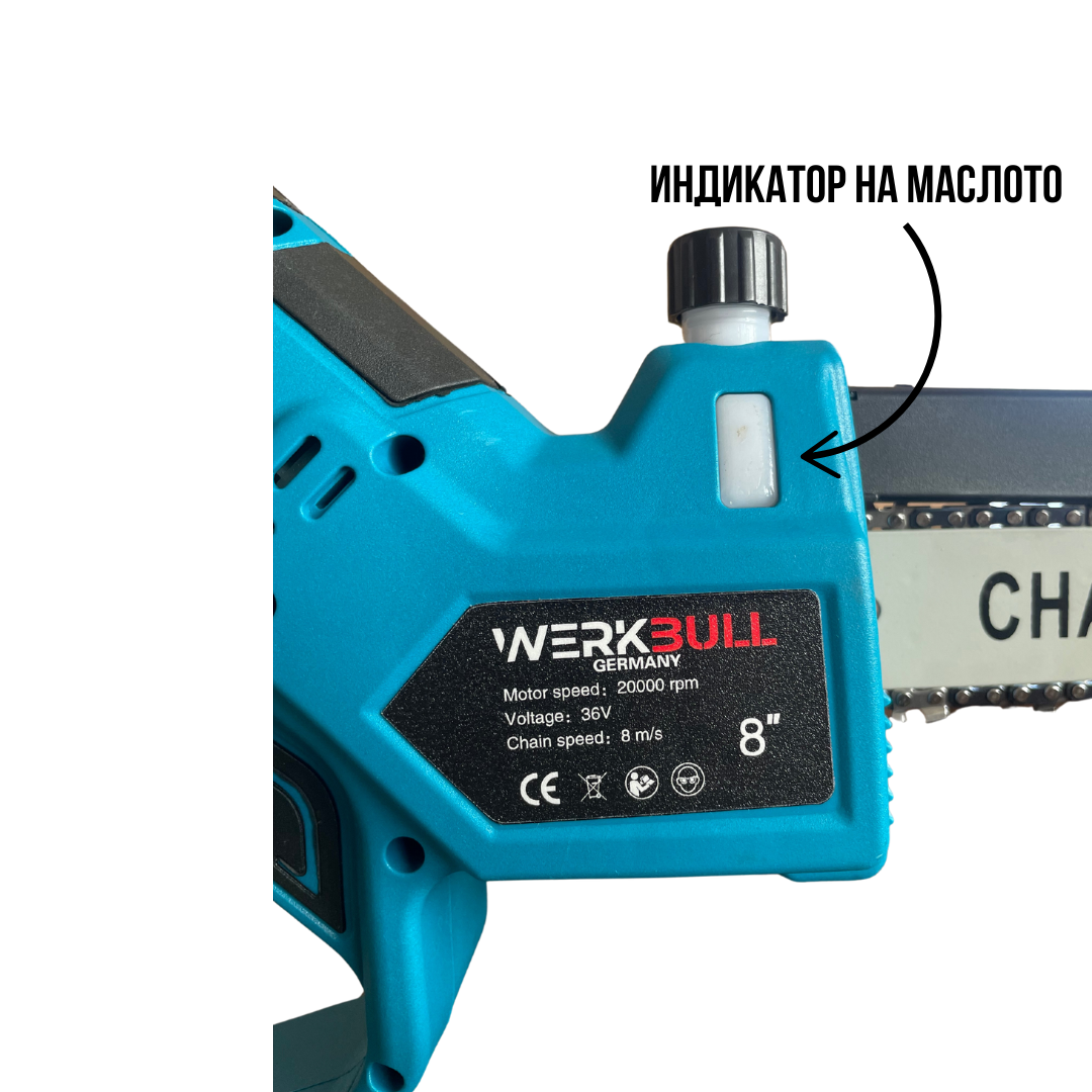 Акумулаторен Безчетков Верижен Трион – Модел 2025 WerkBull ®