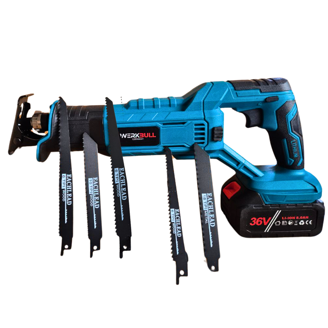 Немски Безчетков Акумулаторен WerkBull 36V Саблен трион + 2бр батерии 8Ah