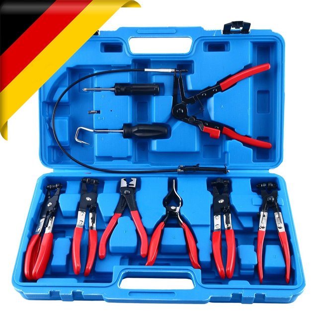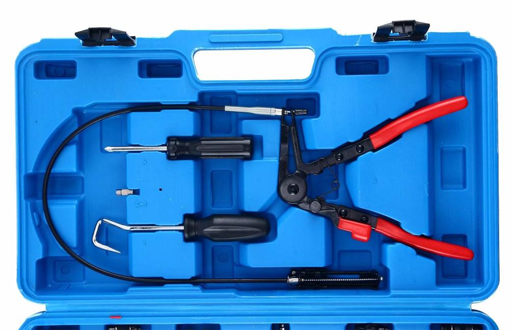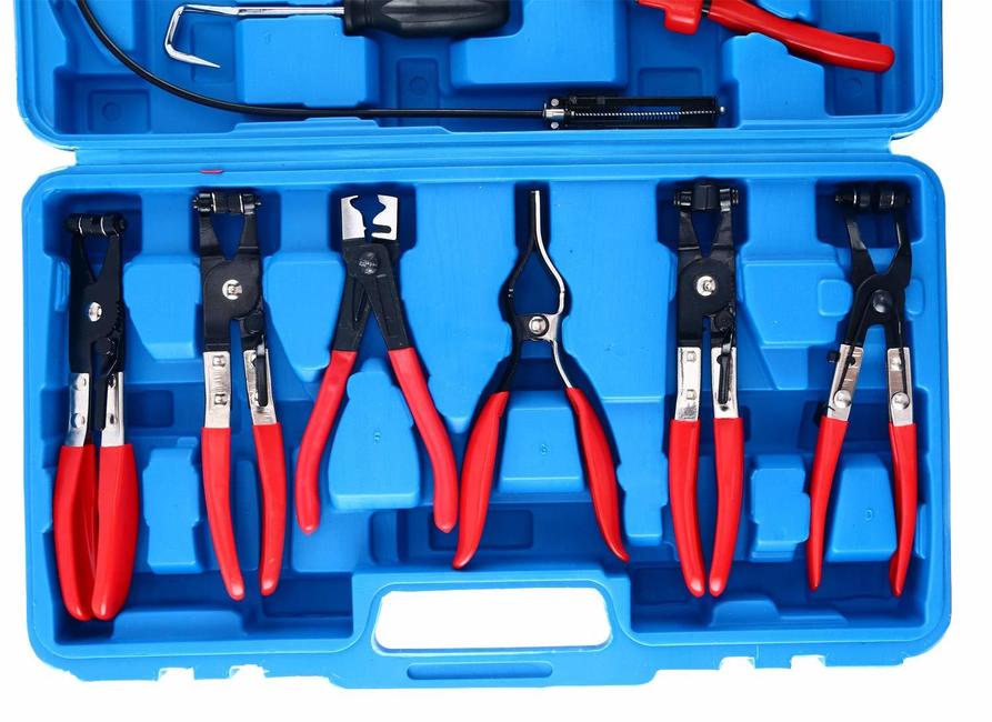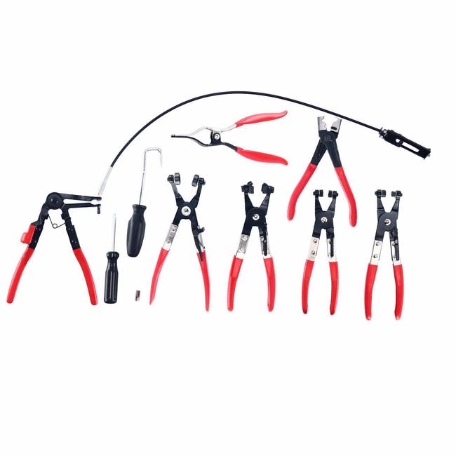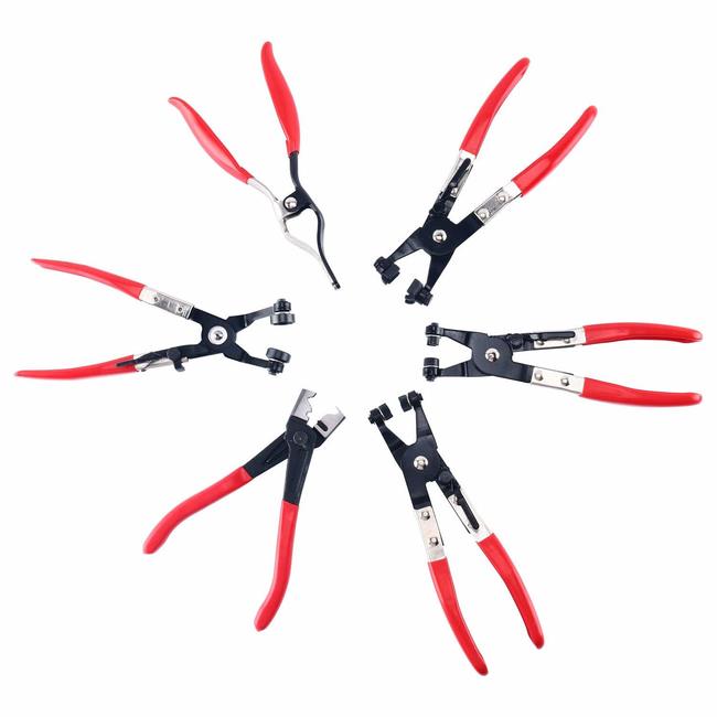 Този комплект от клещи за скоби на водни съединения има общо 7 броя клещи, които предоставят допълнителен достъп и заключване на скобите в отворено положение.