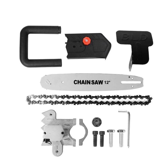 Комплектът съдържа приставка резачка за ъглошлайф + верига и ъглошлайф 1200W 125mm