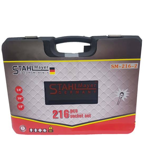 НОВ МОДЕЛ С ТРЕСЧОТНИ Звездогаечни Ключове Немски Куфар с Инструменти 216ч Stahl Mayer Гедоре с 3бр Тресчотка и ключове 8-22- Тресчотни