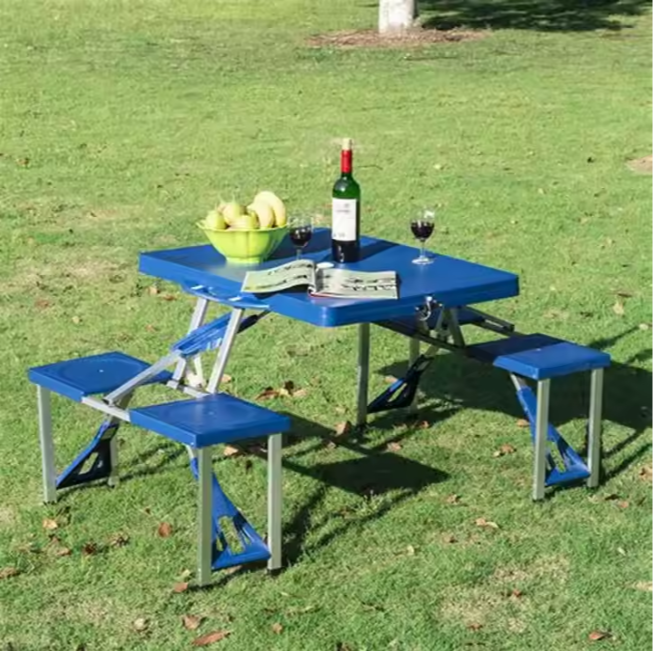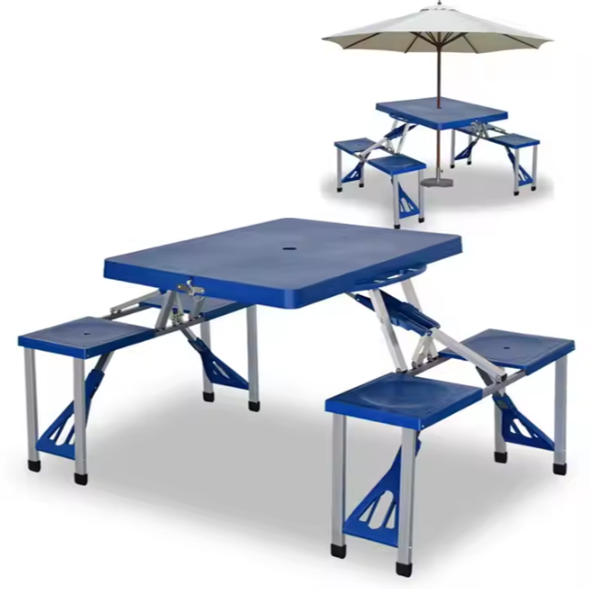 Атрактивна сгъваема маса за пикник с 4 вградени стола