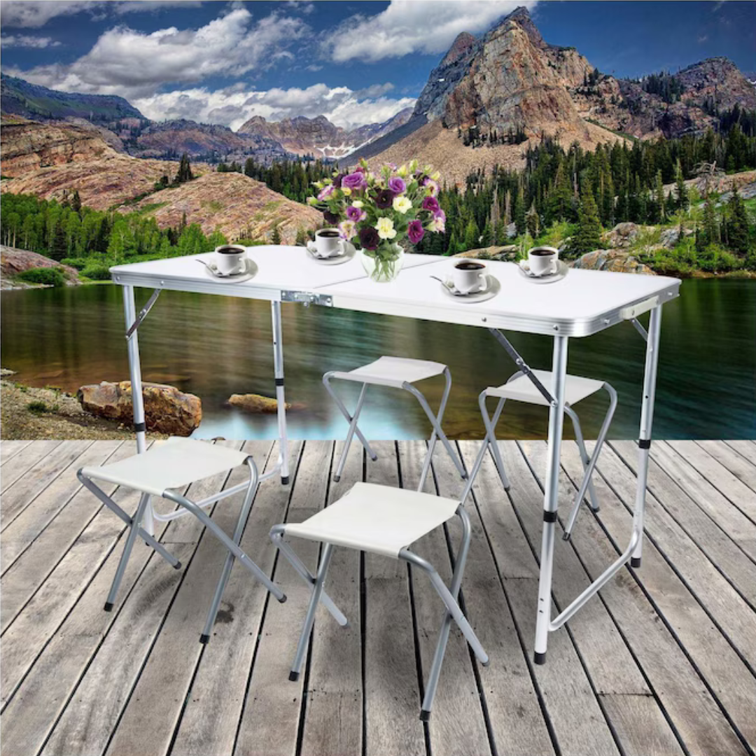 Преносима Алуминиева маса WerkBull с 4 стола,90x70x70 см
