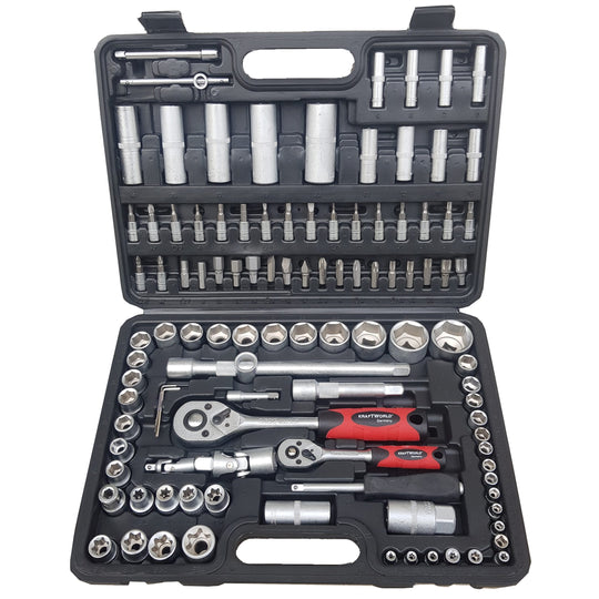 – 17 броя вложки 1/2“ къси: 10мм; 11мм; 12мм; 13мм; 14мм; 15мм; 16мм; 17мм; 18мм; 19мм; 20мм; 21мм; 22мм; 24мм; 27мм; 30мм; 32мм