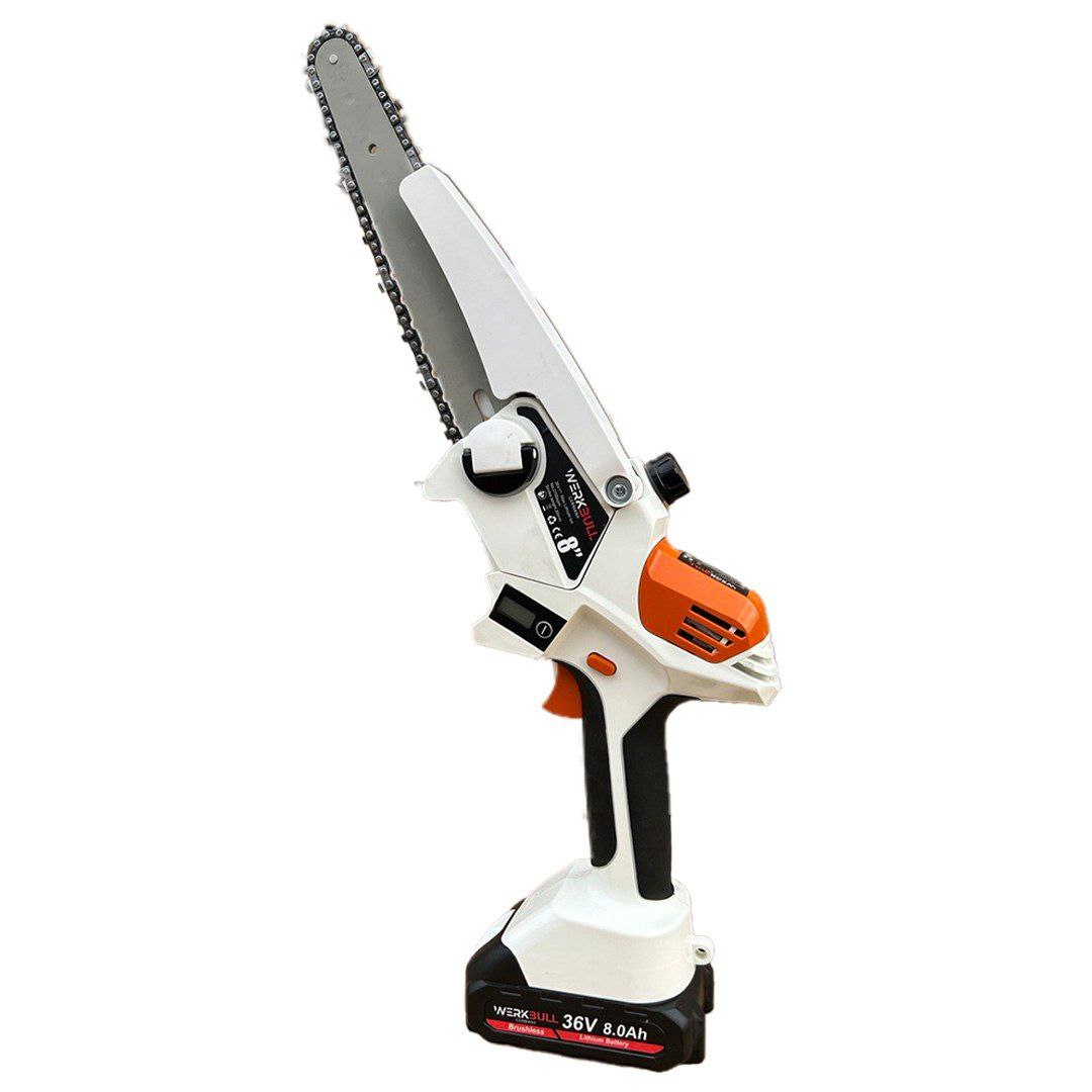 Новият немски акумулаторен верижен трион WerkBull e захранван с мощна батерия от 36v, която издържа до 360 рязания преди да се зареди отново. Той е високоефективен и с ниско ниво на шум при работа. За разлика от другите марки и модели, нашата резачка е изцяло фокусирана в предпазването на клиентите ни при работа, затова има предпазител с дължина 15см с цел максималната им безопасност.