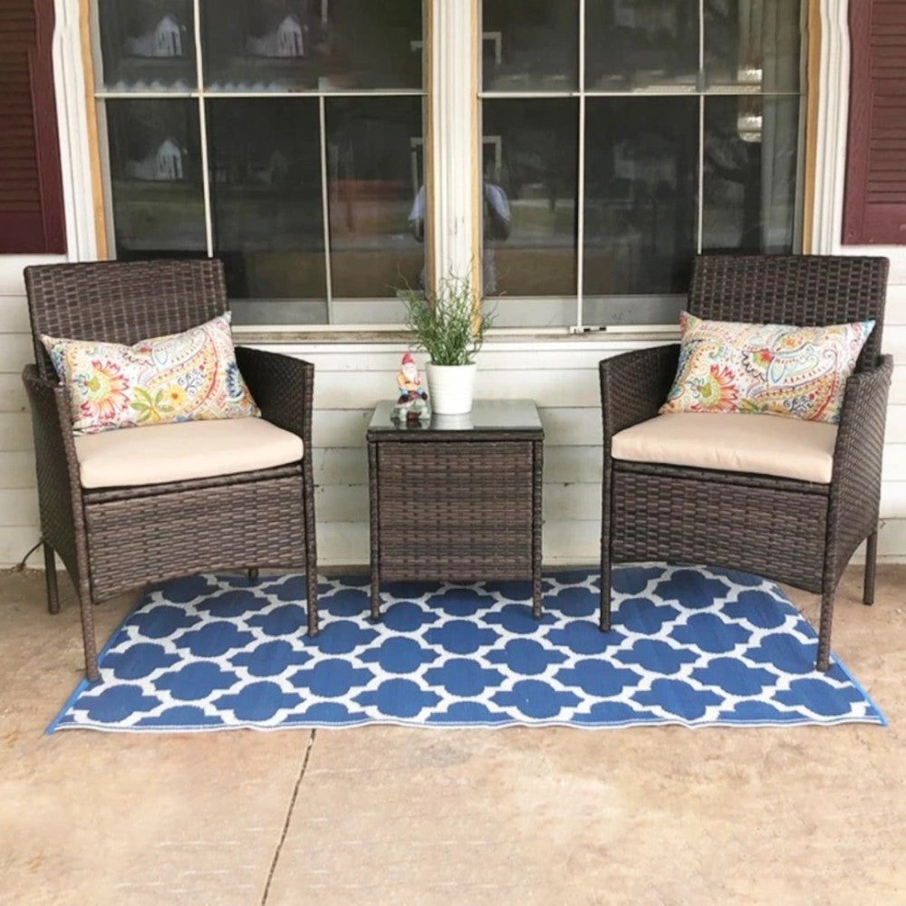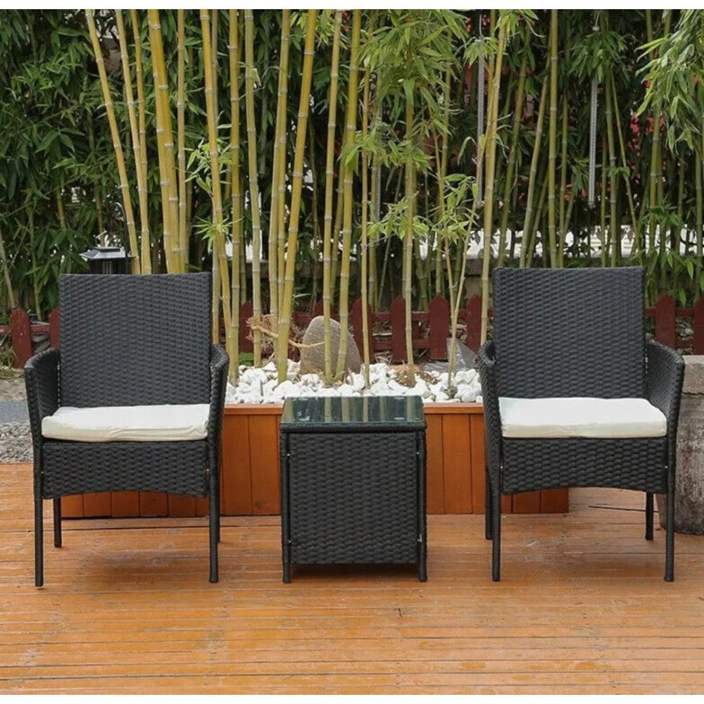 Ратанов Градински Комплект от 3 Части, Черен И Кафяв + Възглавнички
