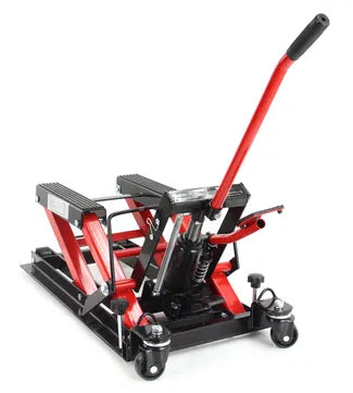 ATV хидравличен крик с товароподемност 680 кг на реномираната фирма MAR-POL. Подсилената структура на повдигача осигурява стабилно повдигане и спускане на мотоциклета. Скобите са покрити с неплъзгаща се гума, за да се предотврати повреда.