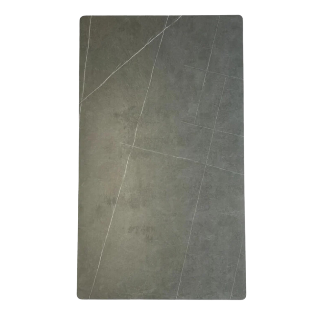 Плот: Изработен от висококласен синтерован камък с дебелина 12 мм, осигуряващ изключителна устойчивост на надраскване, петна и топлина. Повърхността е с матирано сиво покритие, което придава изискан и съвременен вид.