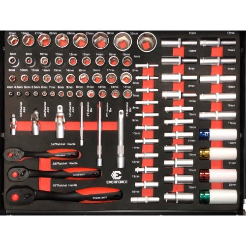 Нов Професионален Шкаф с инструменти EVERFORCE със 7 чекмеджета и отделение за закачане на инструменти