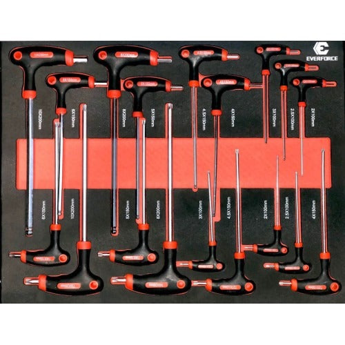 -Комплект ключове от Г- образни с дръжка с 18 части: 2 * 100, 2,5 * 100, 3 * 100, 4 * 150, 4,5 * 150, 5 * 150, 6 * 150, 8 * 200, 10 * 200,