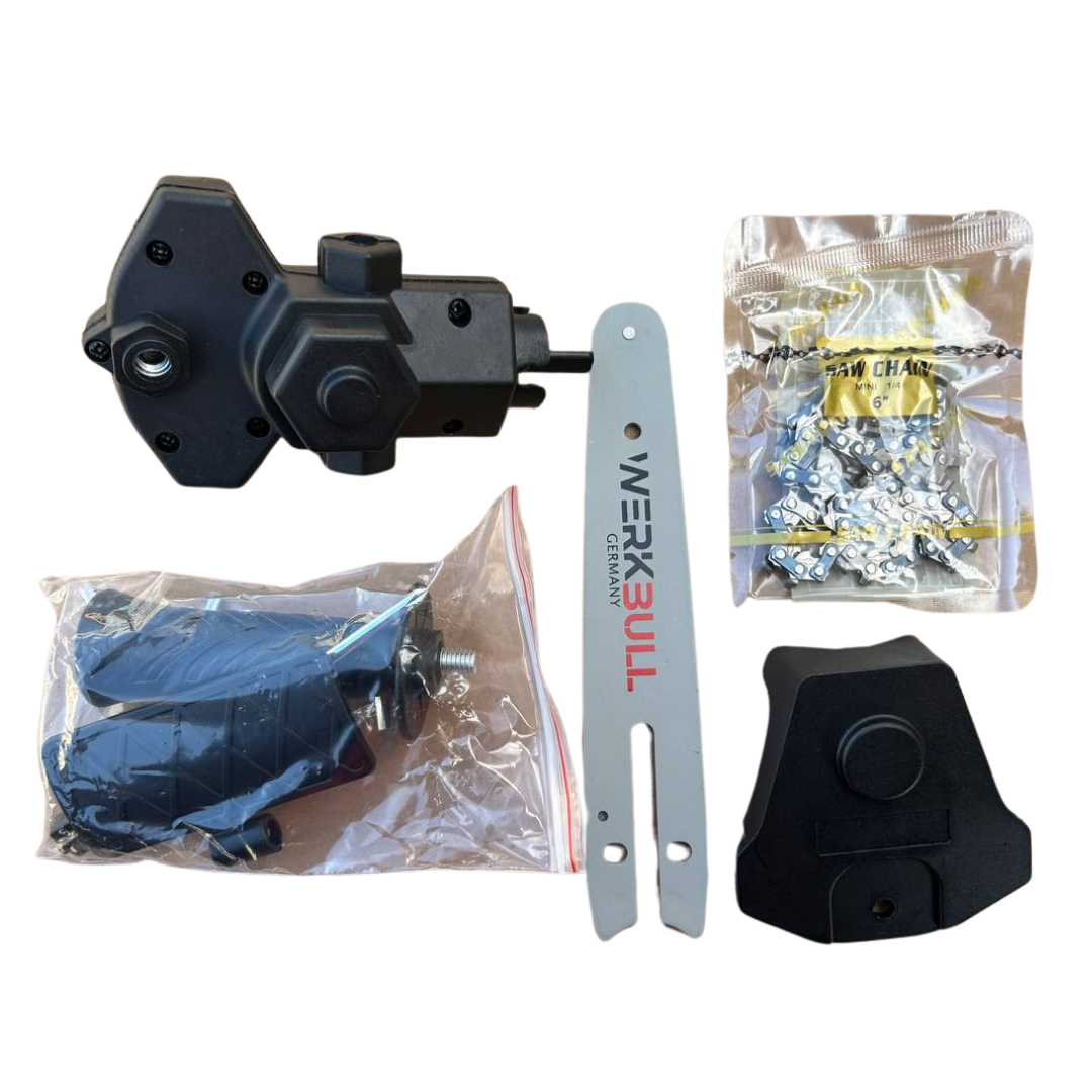 В комплекта е включен и предпазител, който влиза в полза на собственика, когато режете дървени греди или клони. Верижният трион с лекота може да отреже клон с диаметър 10см. С този преобразувател дори не е необходимо да купувате верижен трион, спестявайки пари и време. В сравнение с традиционните тежки електрически верижни триони, този моторен трион е по-лек и преносим, а също и по-лесен за съхранение.