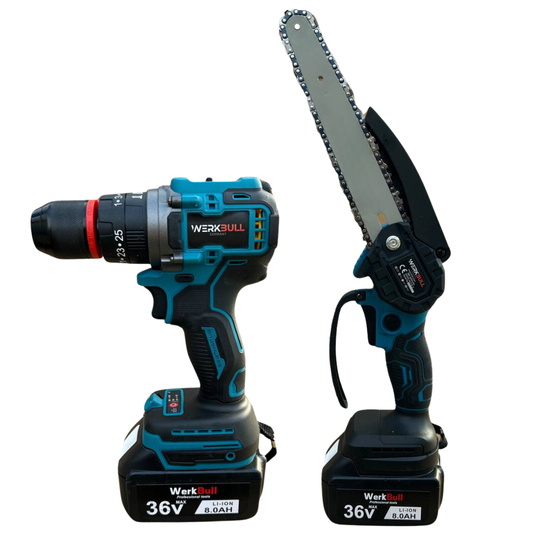 2в1 комплект Ударен Винтоверт и Мини верижен Трион WerkBull с 22см шина + две батерии 36v 8ah