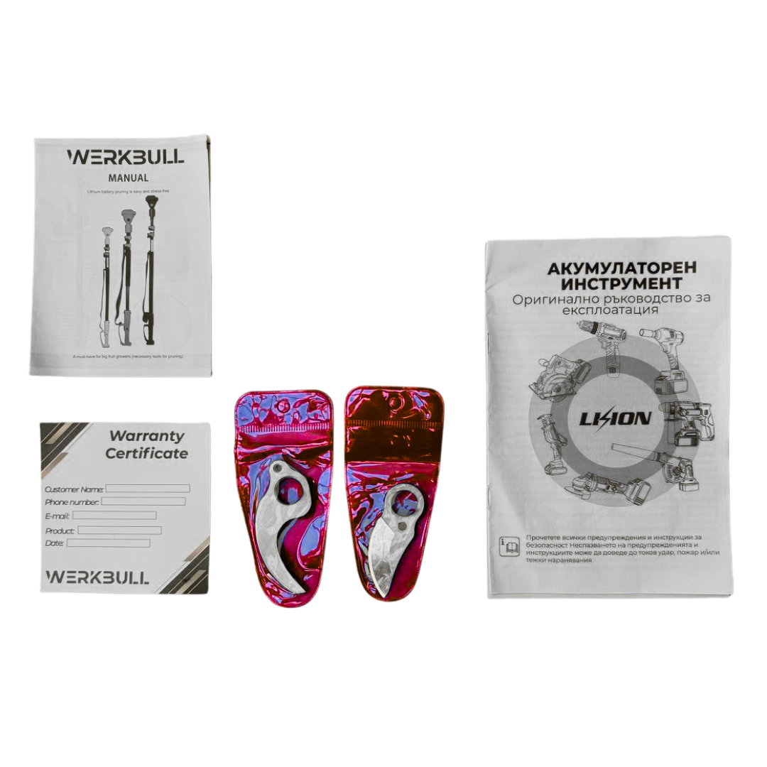 Промо 2в1 комплект WerkBull Професионална Немска Лозарска ножица + Телескопичен Прът с резервен нож и точило