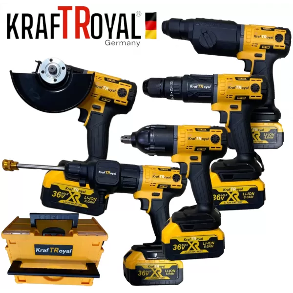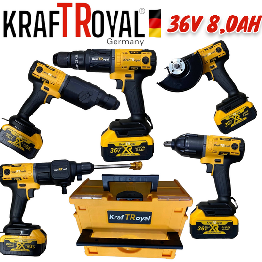 Универсален Акумулаторен Инструмент с 5 Сменяеми Глави (Приставки) KRAFTROYAL 36V 8Ah е промо продукт предназначен за всеки майстор удобен за пренос в куфар!