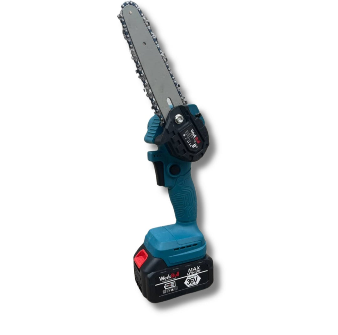 ВИСОКА ЕФЕКТИВНОСТ – Акумулаторен верижен трион WerkBull може да отрежете за около 10 секунди дървена греда с диаметър 15 cm. в зависимост от действителния размер и твърдост на дървесината. Този трион е много подходящ за рязане на дърво, подрязване на клони на дървета, градинарство.